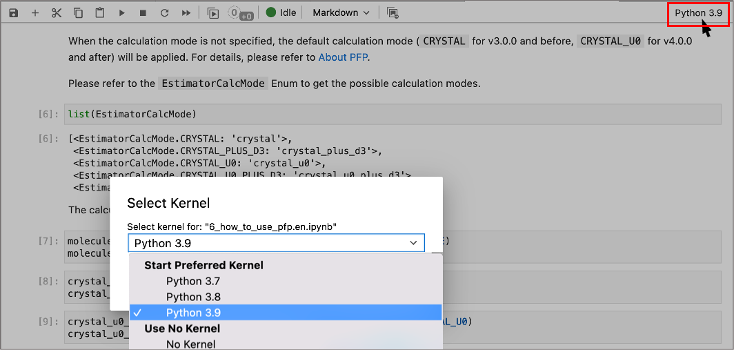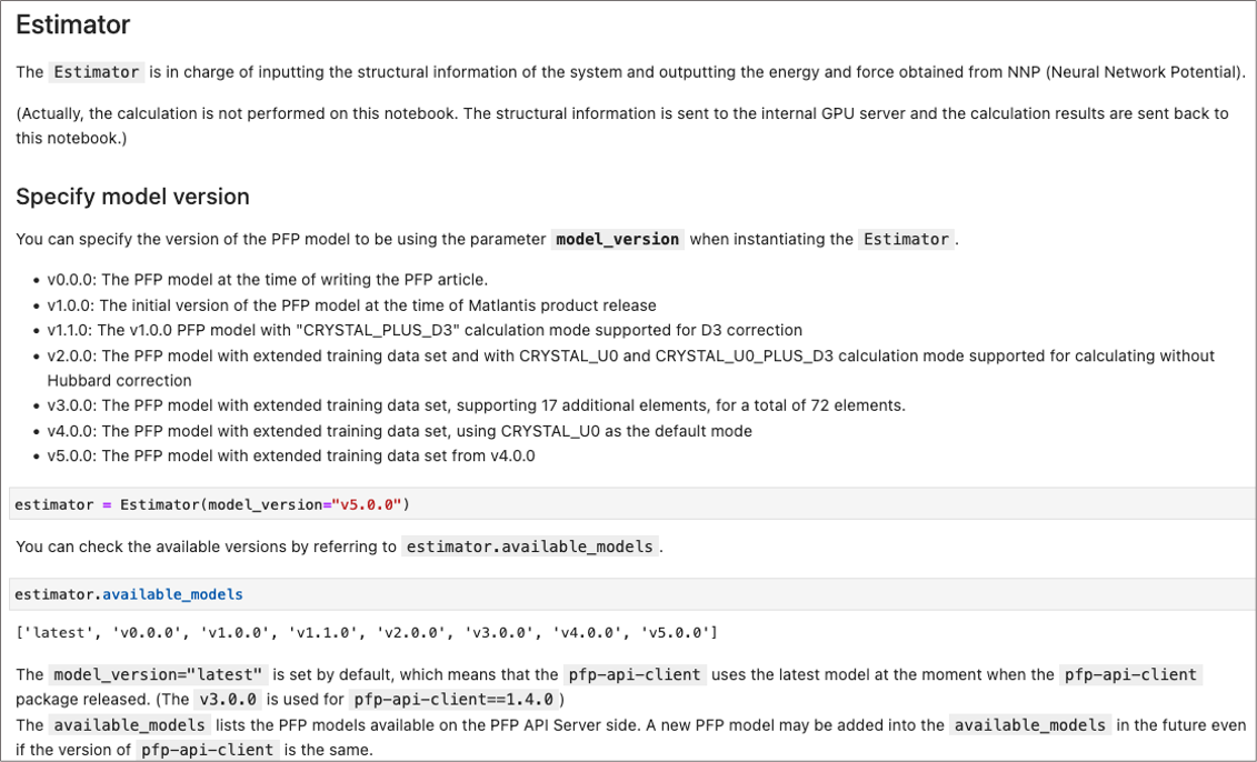 - PFP calculation can be easily performed by creating an instance from the Estimator class of pfp-api-client and setting it to Calculator. For more information about Estimator settings, please click here.