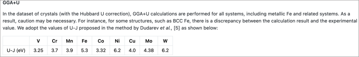 ※ The D3 correction is not applied to the calculation method of the training data, but is accounted for by being added to the inferred values.Calculation mode Calculation mode Computational methods for training data PBE CRYSTAL_U0 PBE/PAW only PBE_PLUS_D3 CRYSTAL_U0_PLUS_D3 PBE/PAW + Grimme-D3※ PBE_U CRYSTAL PBE/PAW with Hubbard correction CRYSTAL_U0_PLUS_D3 CRYSTAL_U0_PLUS_D3 PBE/PAW with Hubbard correction+ Grimme-D3※ MOLECULE MOLECULE ωB97xd/6-31G(d)
