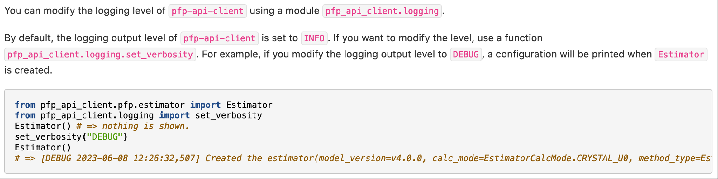 from Matlantis Guidebook > About pfp-api-client > About the logging of pfp-api-client