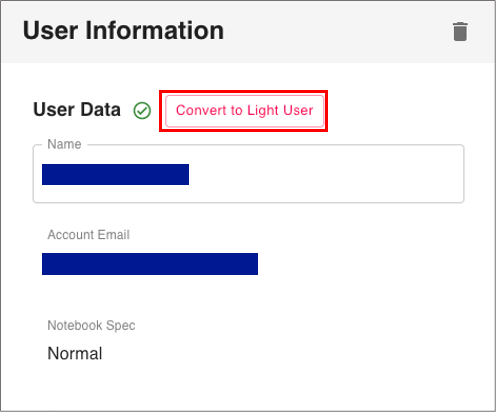 - to switch Notebook User to Light User : "Convert to Light User"