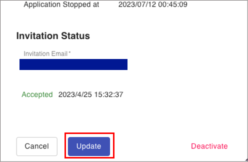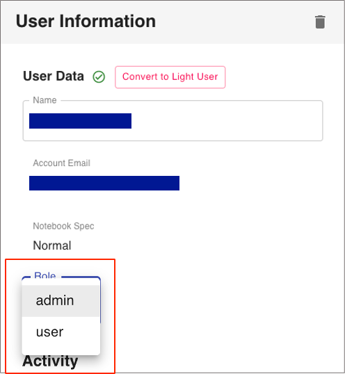 Select a Role (admin/user) in the pull-down menu and click "Update" to execute.