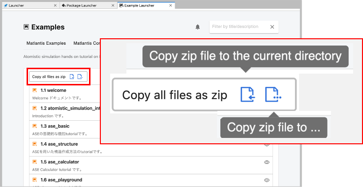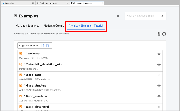 The Atomistic Simulation Tutorial can be downloaded from the Matlantis example launcher.