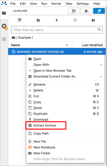 - Copy zip file to the current directory: Copy to the location currently open in the File Browser