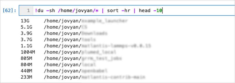!du -sh /home/jovyan/* | sort -hr | head -10