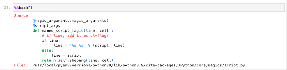 Appending it after a magic command outputs the source code of that magic command.