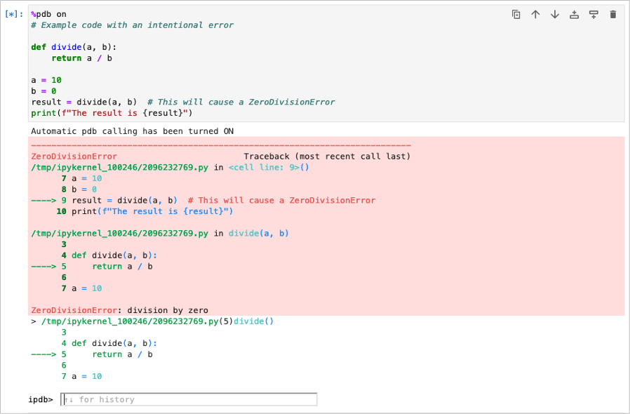 %pdb on (Add this to the beginning of a cell)