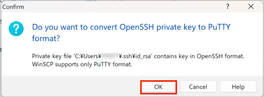 - Convert to Putty format by clicking "OK"