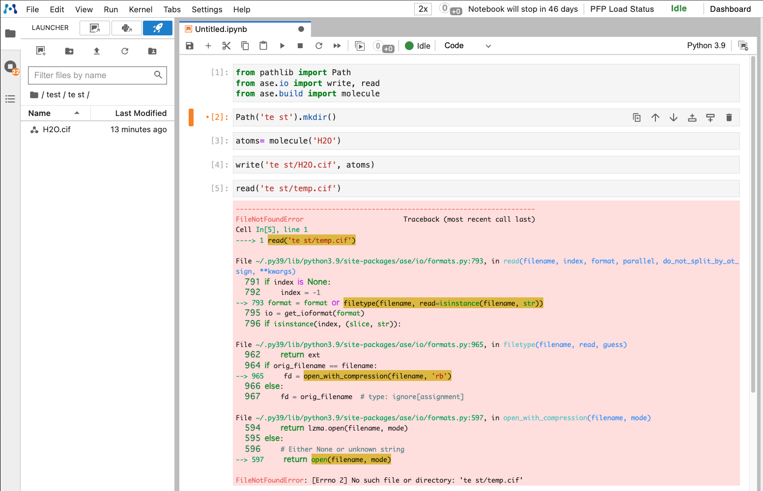 When attempting to read a file located in a directory (folder) that contains spaces using ASE's ase.io.read, it triggers an error.