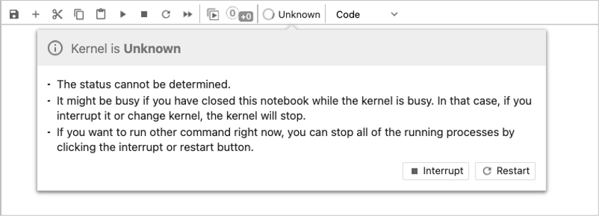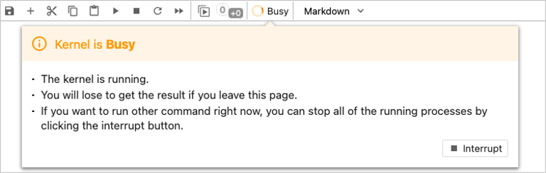 When executing in the foreground, if the connection to the kernel is lost (e.g., due to a timeout), the output will stop and the kernel status will become 'Unknown.'