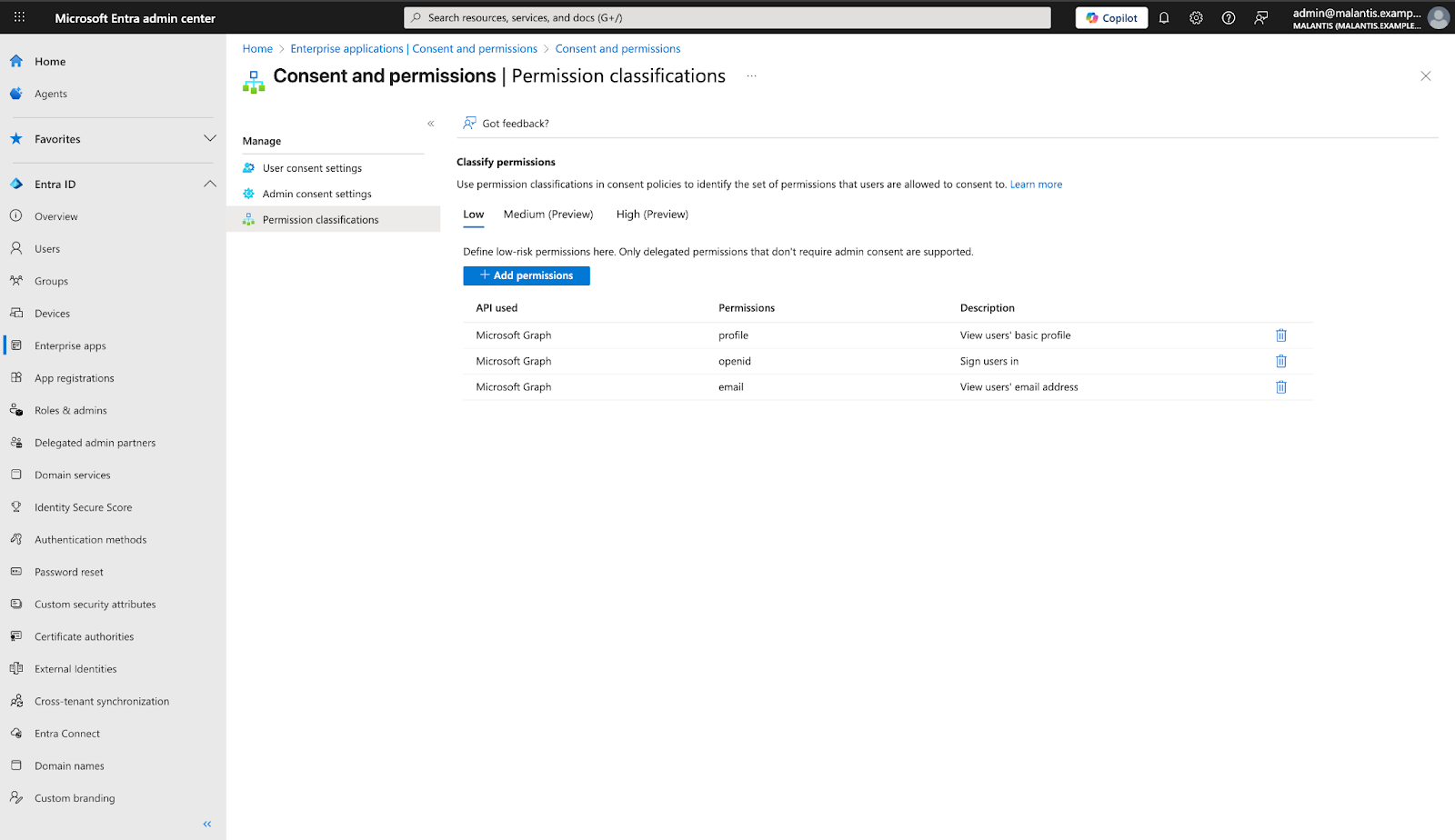 Check Enterprise apps > Consent and permissions > Permission classifications.