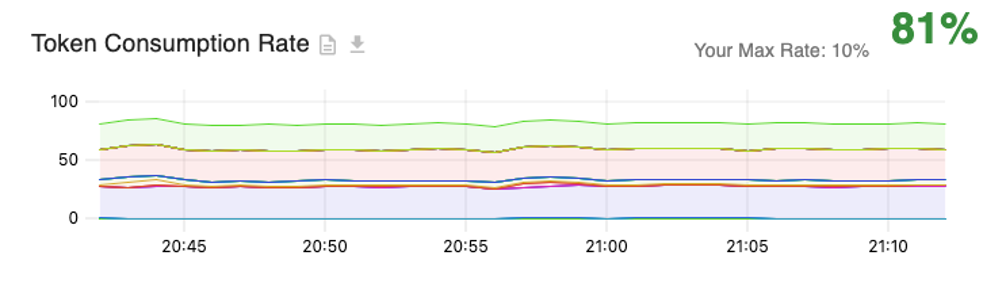 - Theoretically, if the total consumption percentage for all users within a tenant is set to exactly 100%, the Token Availability will not drop below 100% (i.e., it will not "burst").