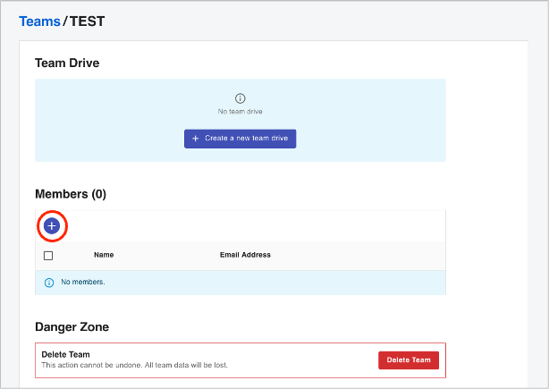 - テナントにいるユーザーからこのTeam Drive にアクセス可能なメンバーを選び、この共有ドライブに招待します。