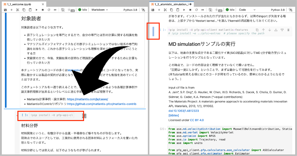 - 異なるノートブック間でセルをドラッグ&ドロップするとセルがコピーされます。