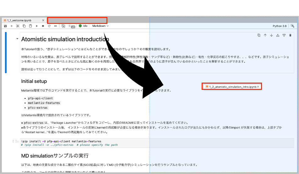 ノートブックをドラッグ&ドロップすると画面を分割できます。
