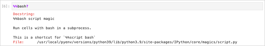 %%bash は %%script というシェルコマンドを実行可能にするマジックコマンドのbashモード(%%script bash)のショートカットで同じ処理をします。
