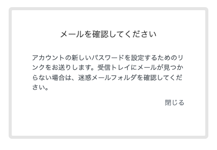- 登録したメールアドレスの受信ボックスをご確認ください。「新しいパスワードの設定」リンクをクリックします。