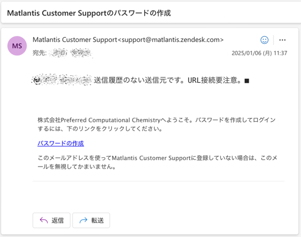 - support@matlantis.zendesk.com からのメールを受信できるようにしてください。