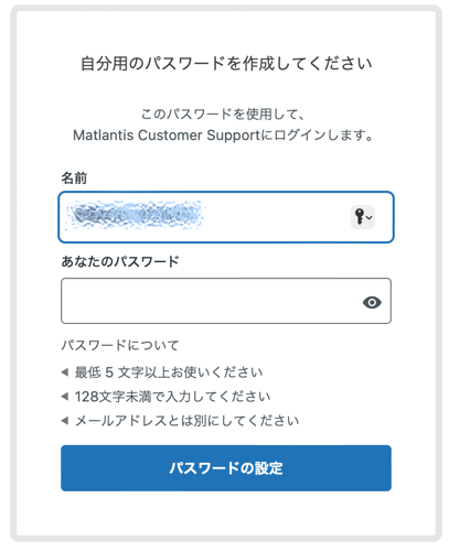 パスワードを作成する画面は次の通りです。以下の条件を満たすように設定してください。