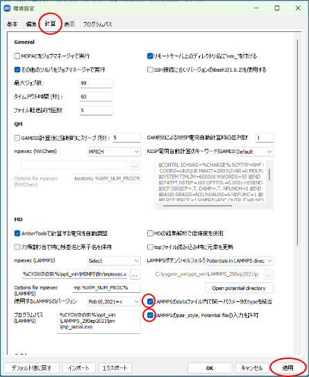 MD > LAMMPS > ワークフロー設定