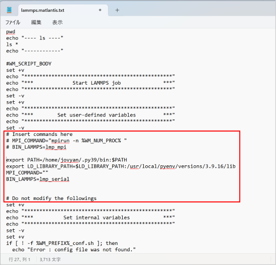 - 元々のMPI_COMMAND, BIN_LAMMPS の行はコメントアウト(削除でもOK)