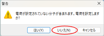 電荷が設定されていない分子が含まれます。電荷を設定しますか? > いいえ
