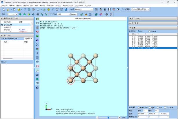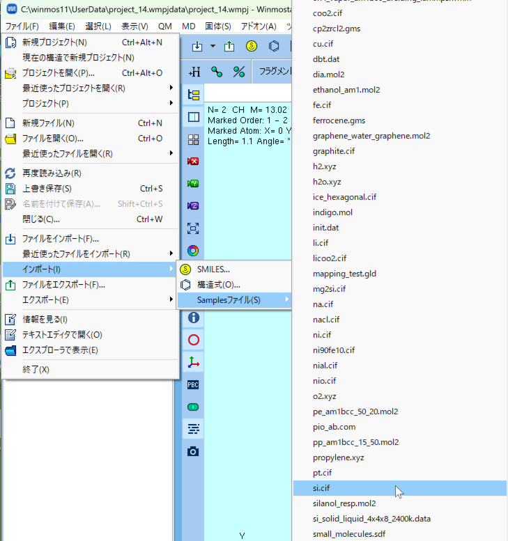 ファイル>インポート>Samples ファイル > Si.cif