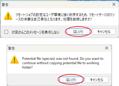 いくつかの警告が表示されます。「はい」を選択してください。