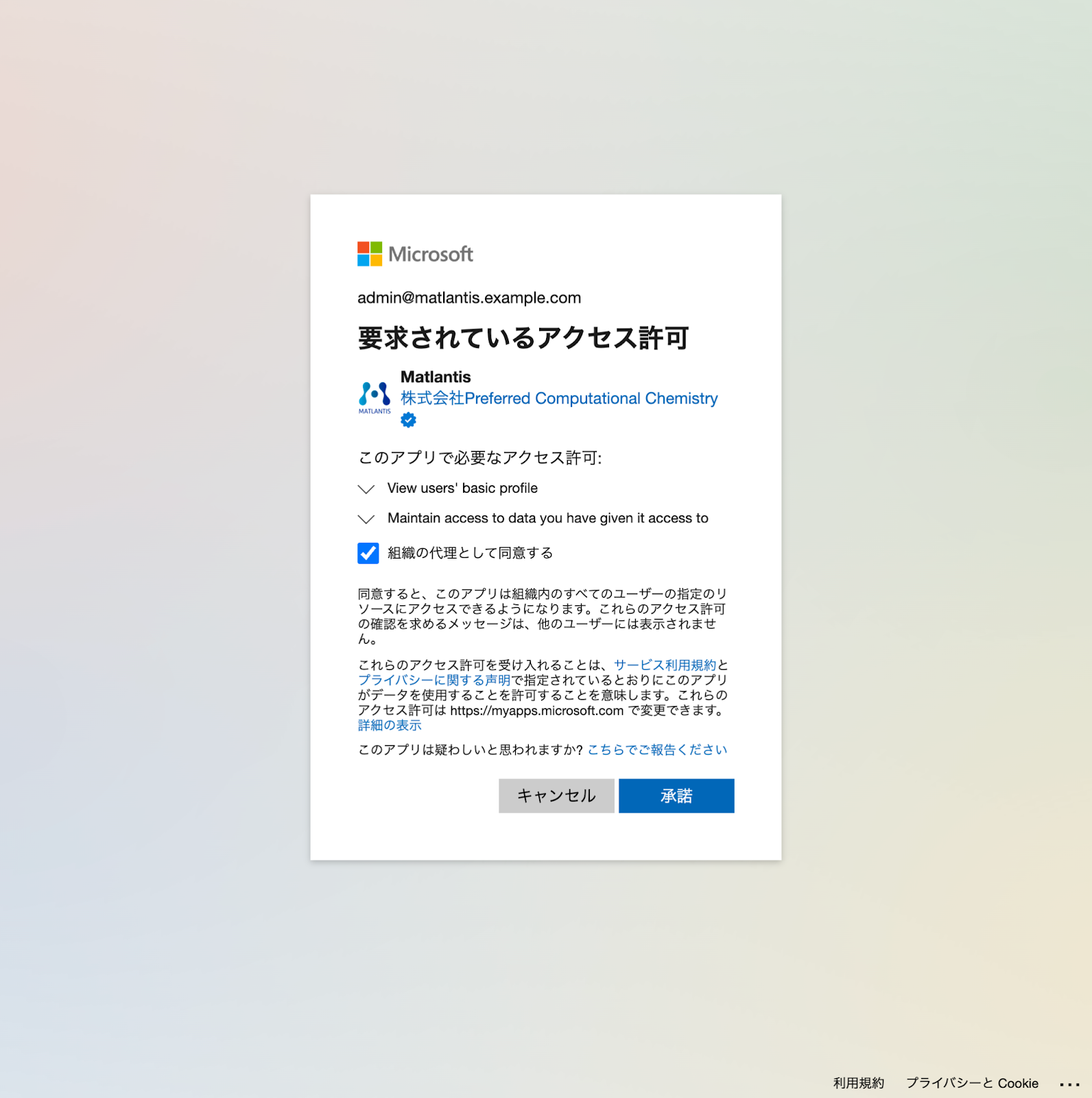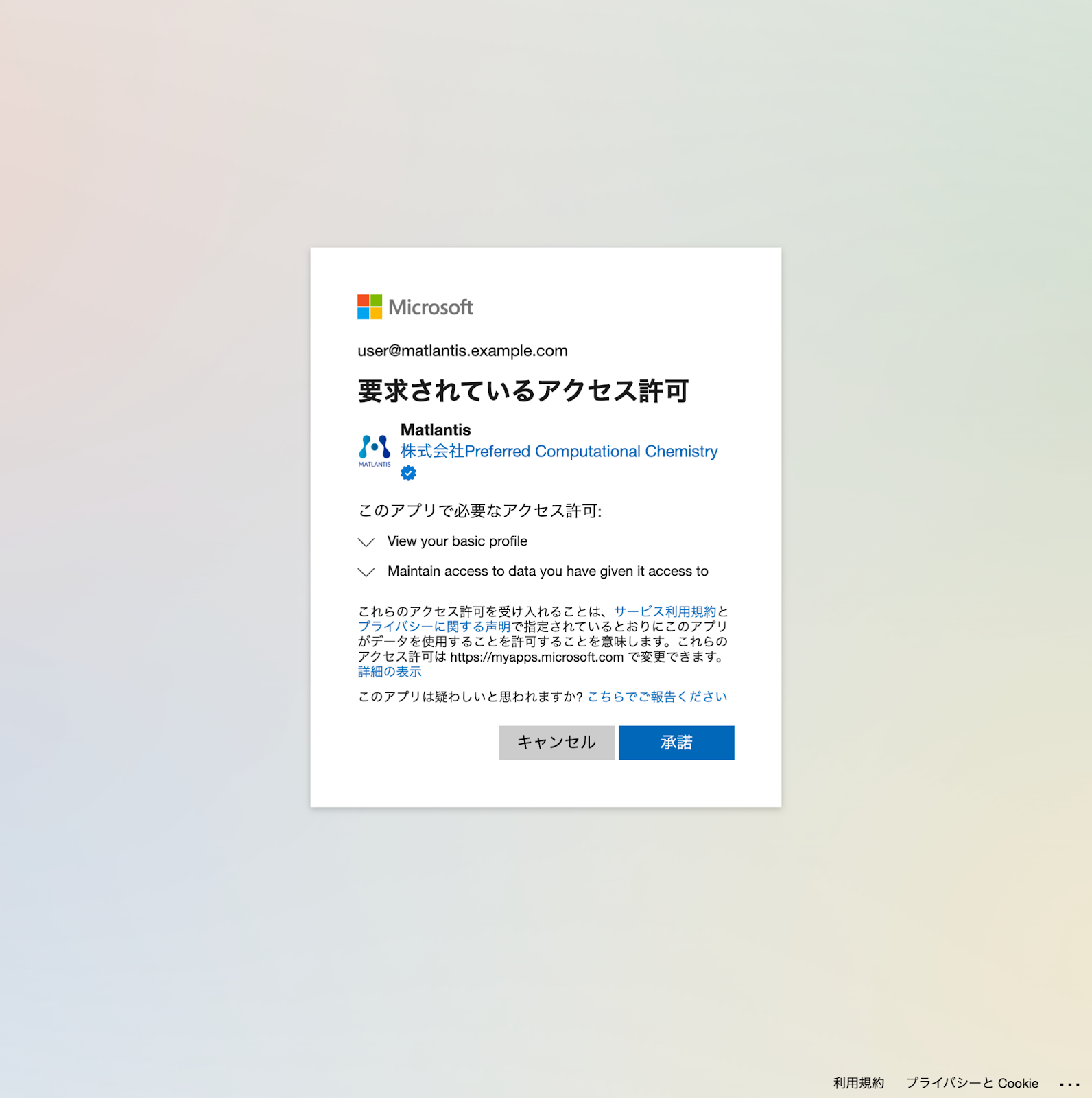 - Entra ID の管理者を (一時的に) Matlantis に招待する必要があるため、別途ご相談ください。