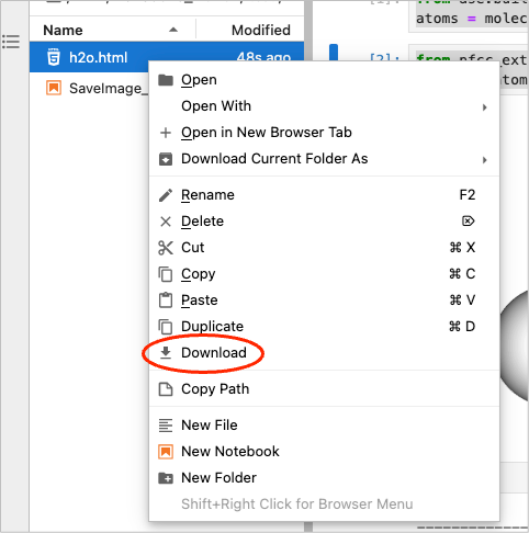 - File Browser でNotebookと同じ場所に出力された html ファイルをダウンロードします。