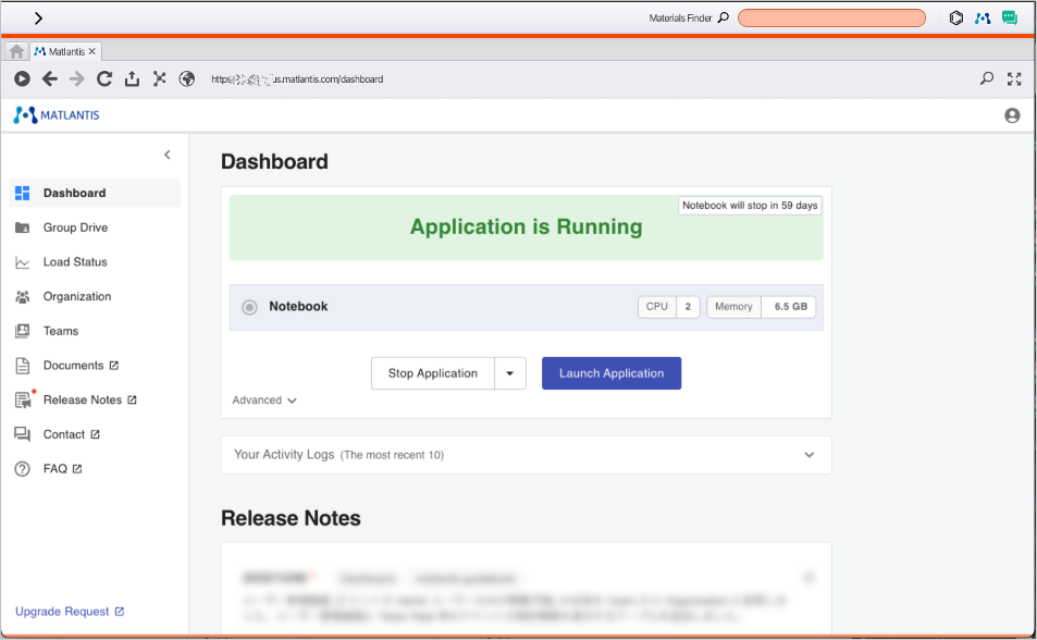 ※ Open Web Page to Log in to Matlantis の文字が赤い場合、URLが無効です。
