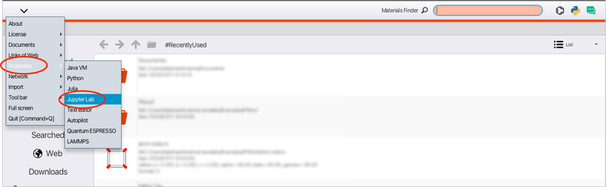 ※アップロード先は Properties > JupyterLab の Uploading Path で、構造ファイルの拡張子は Uploading File Type で設定でします