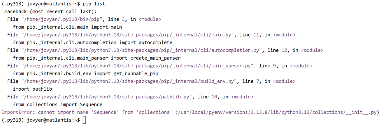 図:pip list時に発生するエラー